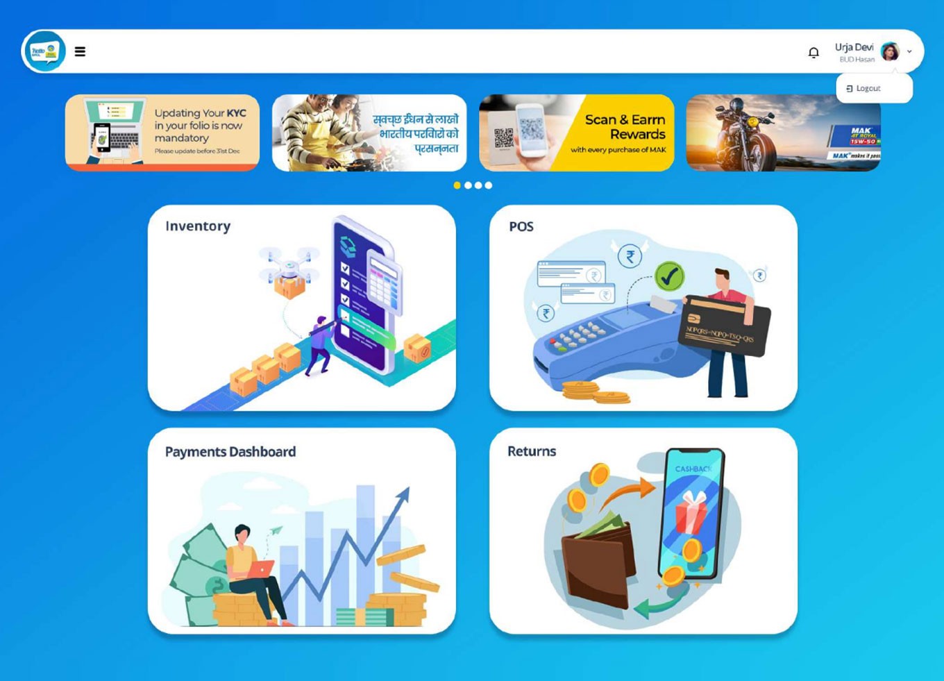 BPCL aimed to empower village women to become entrepreneurs by enabling them to run micro-retail outlets in remote areas. The key challenge was to build a scalable, multilingual digital platform that could streamline inventory logistics, manage POS systems, support diverse payments, and remain accessible and intuitive for non-tech-savvy users.